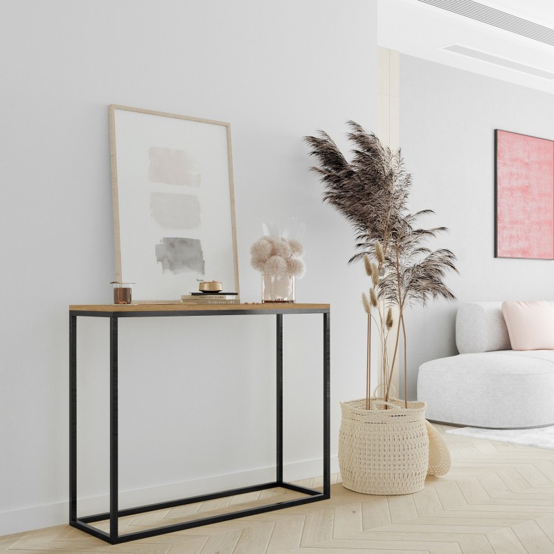 Die ungewöhnliche schwarze Industriekonsole ist ein echter Hingucker. Ihr minimalistisches Design kombiniert mit einer massiven 18 mm dicken Platte ergibt eine harmonische Komposition. Mit dem Schwarz der Konsole können Sie andere dekorative Elemente oder Accessoires im Raum perfekt betonen.